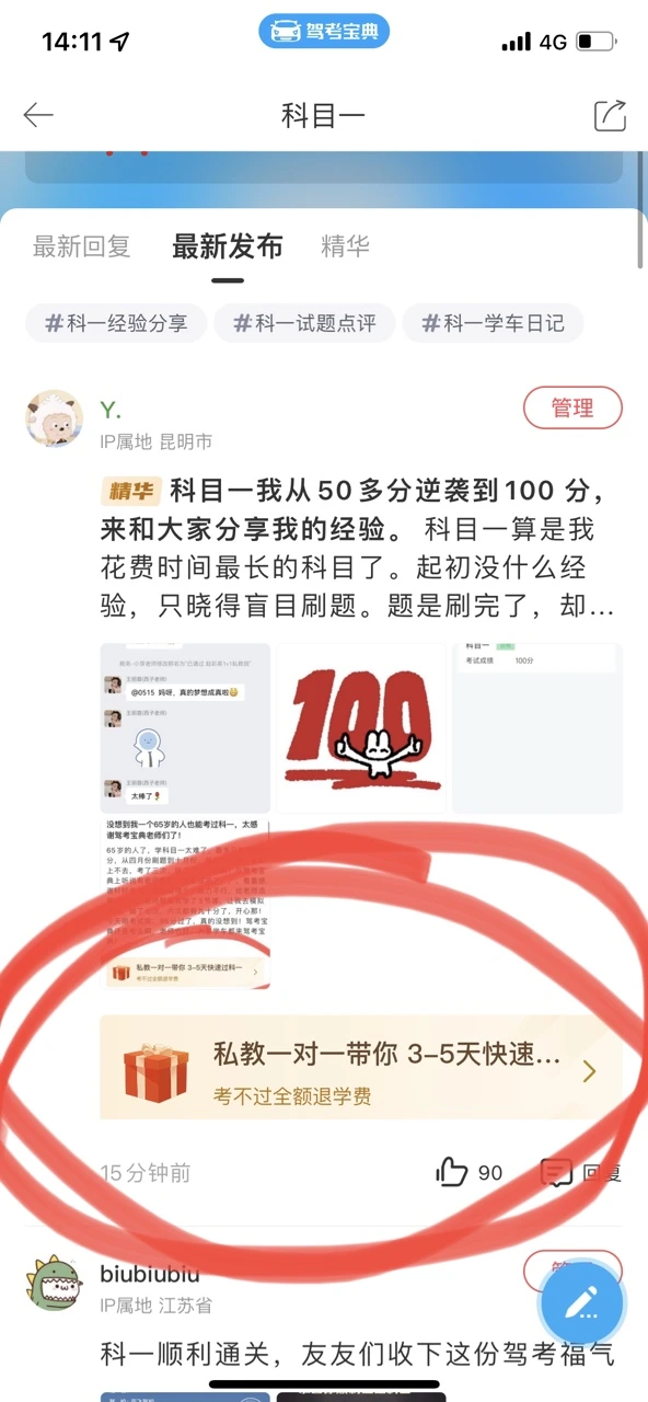 科目一算是我花费时间最长的科目了。起初没什么经验,只晓得盲目刷题。题是刷完了,却摸不着重点,模拟考试最高也才50多分。快考试的时候,心里特别担心自己挂科,于是去求助了宝典的老师们。老师给我推荐了一对一私教课,还承诺不过不收钱。我当时就寻思,这可不就是 “包过” 嘛,反正就算没过也不亏,就当免费听了几节课,还挺划算,哈哈。 报名后,就有专属老师为我量身定制学习计划,还亲自给我上课。不上课的时候,老师也常常提醒我刷题、帮我分析问题,几乎就是随叫随到,这待遇真的绝了!!!跟着学了几天,模拟考试我就能考到 90 多分了。等到正式考试的时候,满分过啦~ 家人们这私教课真的是包过,像我这种题都刷完了还过不了的 “困难户” 都能考过,我都后悔没早点发现这私教课,之前那些时间都白白浪费了。 ps:私教课的位置我在上方图片圈出来了哦,就是那个黄色的卡片。