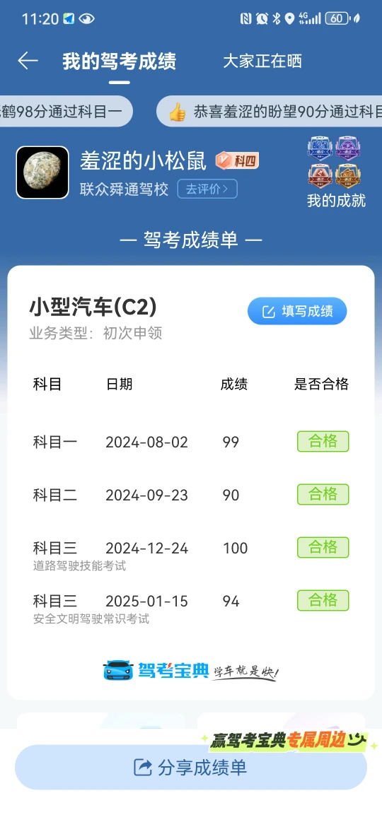 感谢驾考宝典,!让我从科一到科四都是一把过,拿到自己驾照了!!
