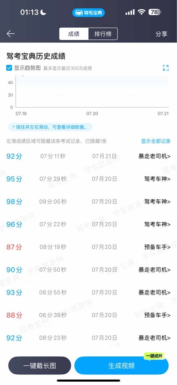 第一次才三十多,慢慢地刷八十多到九十多,直到一百分,挺辛苦的