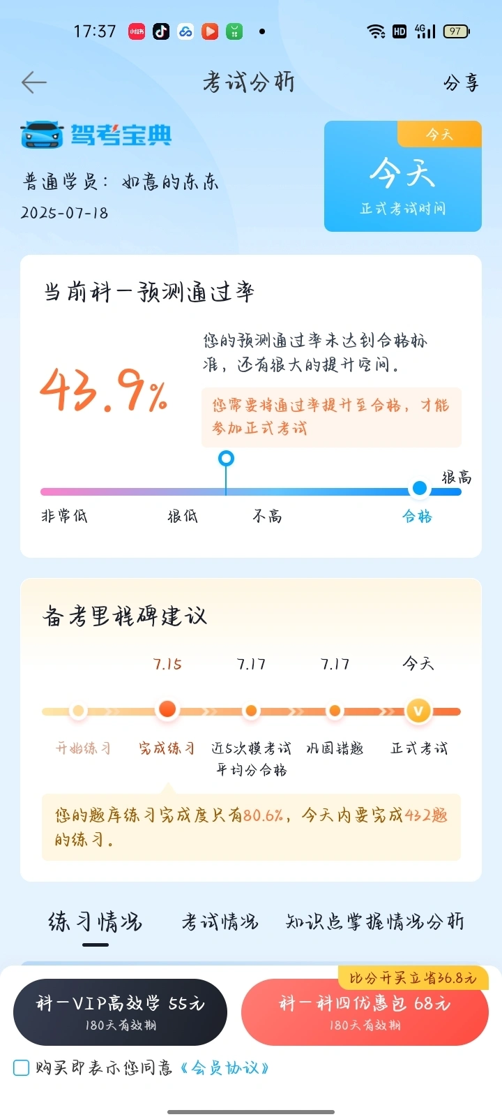 我运气挺好的,考的差不多及格,但是考试都是我会的~感觉他这个再努力一下就行