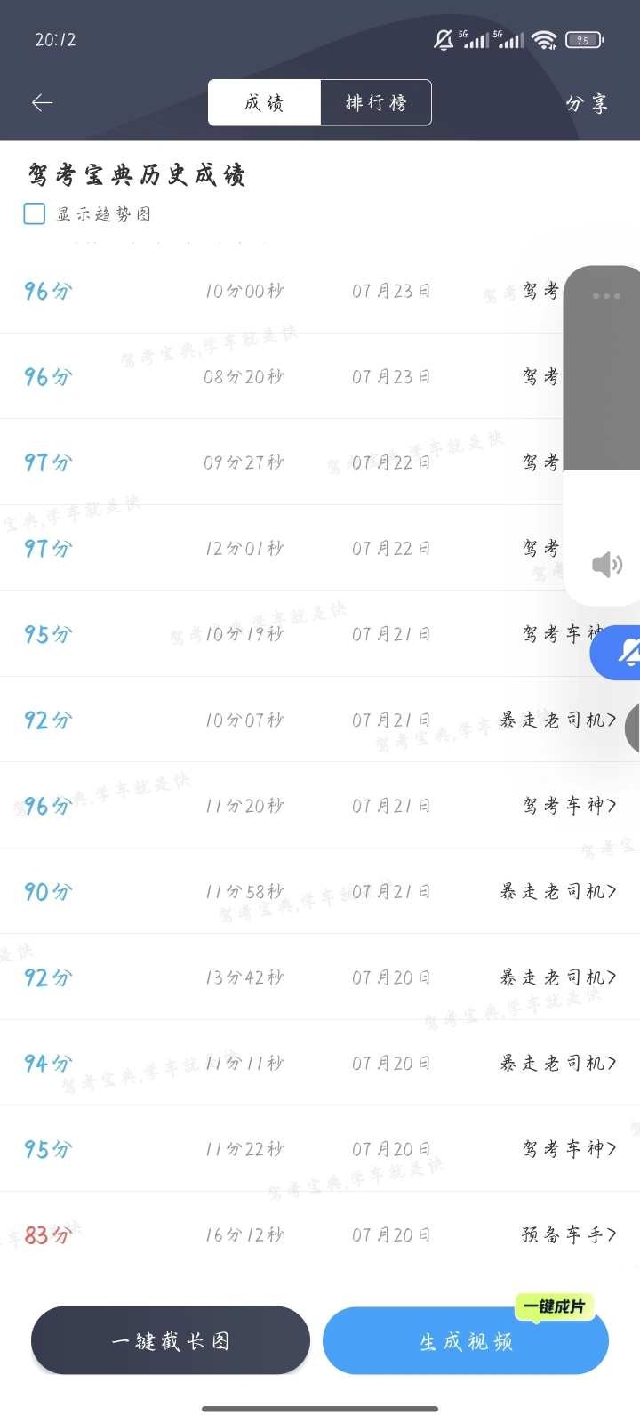 和你差不多,科一96过的