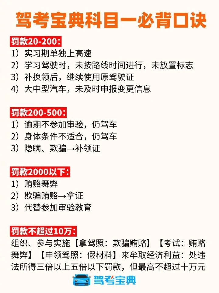 罚款的 扣分的 当时就记不住 一遇到就错 还有手势 好在皇天不负有心人 一次过 拿上驾照