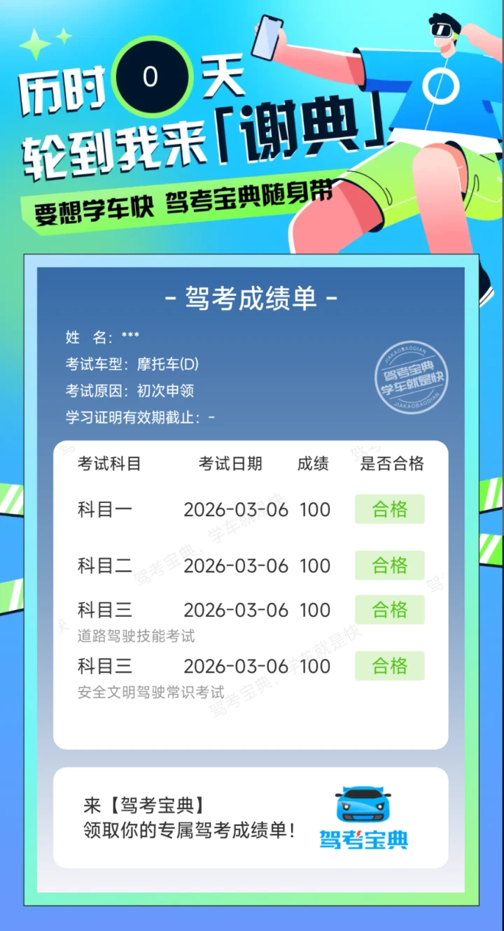 九十五分过,我儿子科一考九十七分