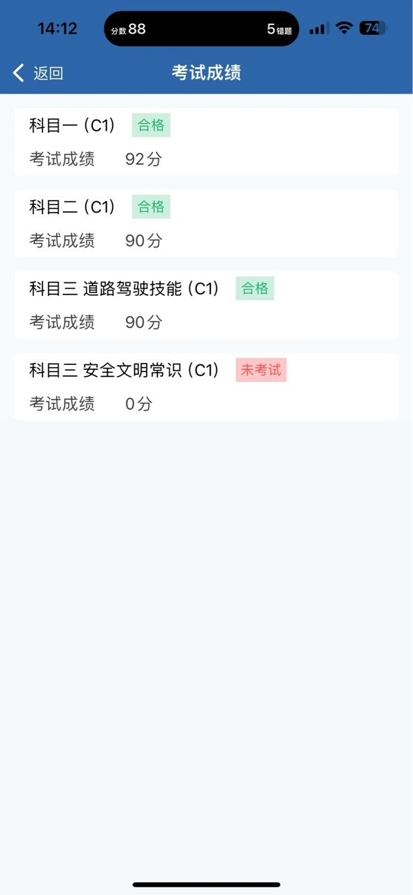 考科一的时候超级紧张,心惊胆战地考完的(不知道大家考科一的时候紧不紧张😂😂),后面幸好考了 94 分过了(/ω\)