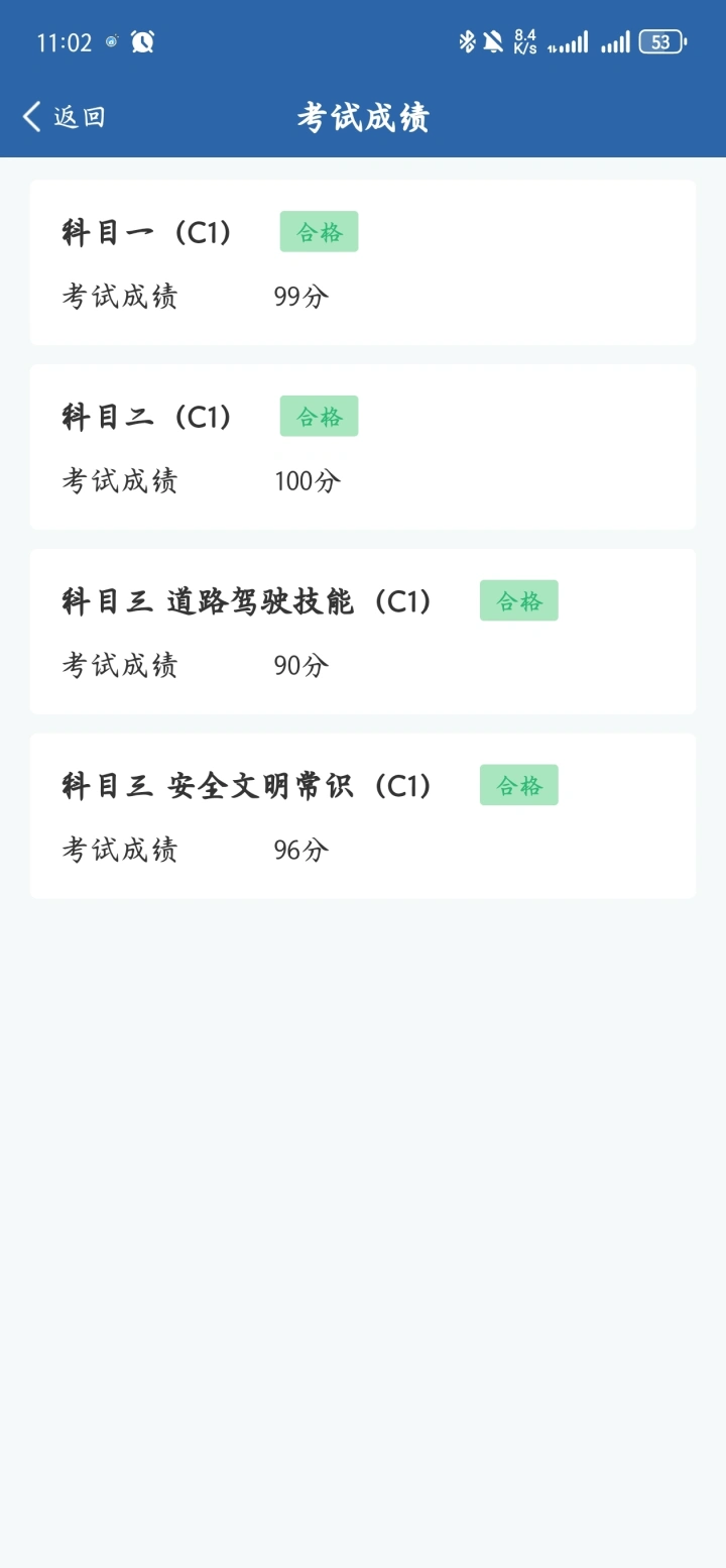 96分,本来能考100分,可那天太热了,做题比较快5分钟就交卷了😄