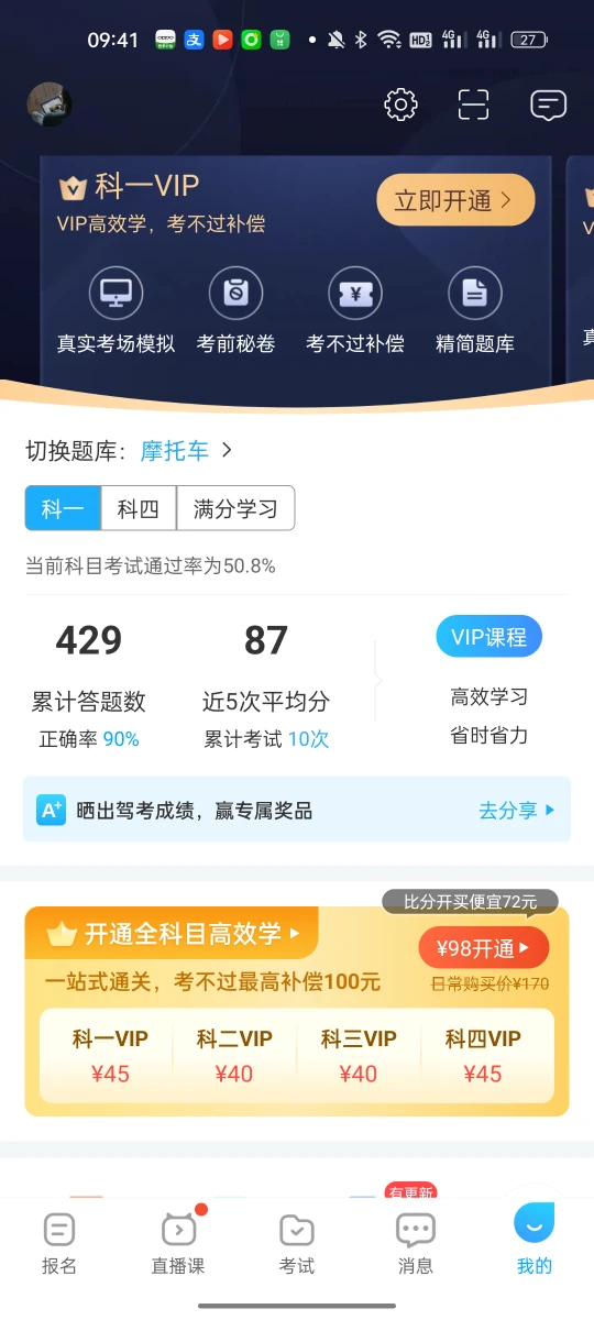 已过,前来卸典。科目一科目四一