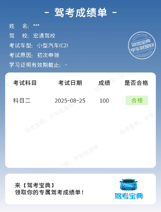 科二过考啦!始终要相信自己~学车就像修炼一样,一天比一天奈斯!