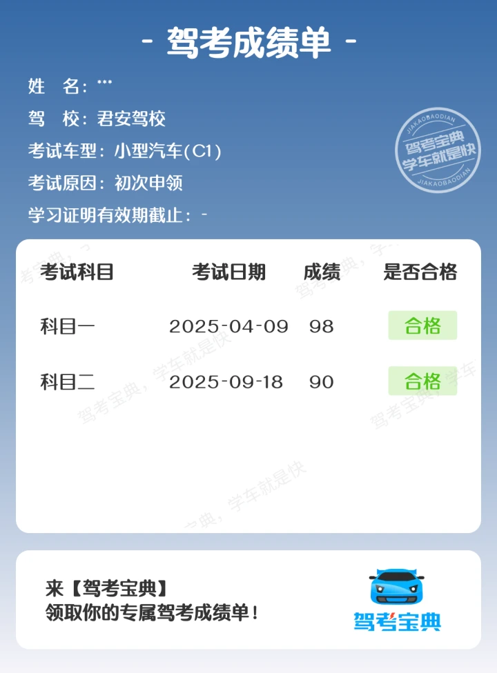 科二过考啦!始终要相信自己~学车就像修炼一样,一天比一天奈斯!