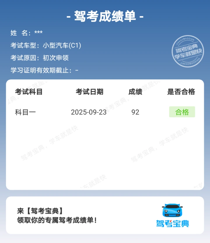 科一顺利通关,友友们收下这份驾考福气