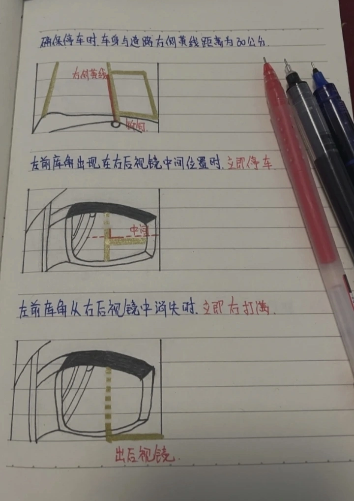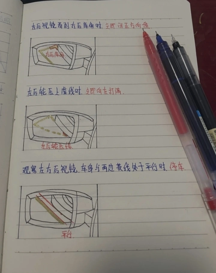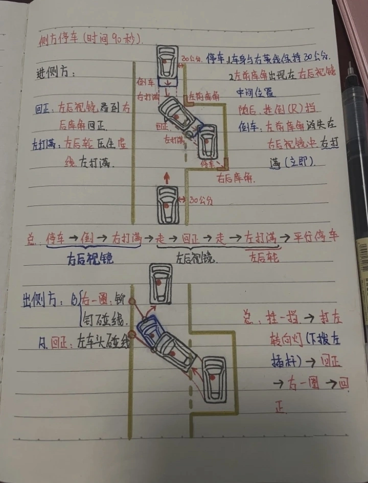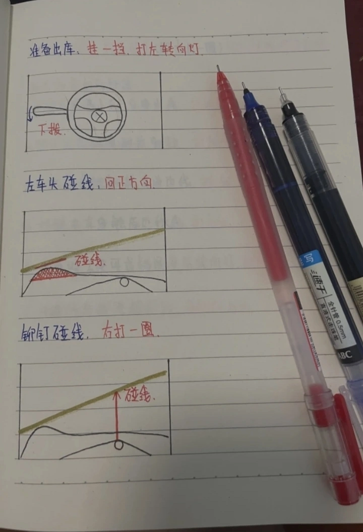 每日早上7点过准备出门去驾校练车,风雨无阻 每天坚持AR模拟科目二考场考试 私底下做功课总结