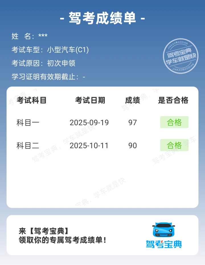 科二过考啦!始终要相信自己~学车就像修炼一样,一天比一天奈斯!