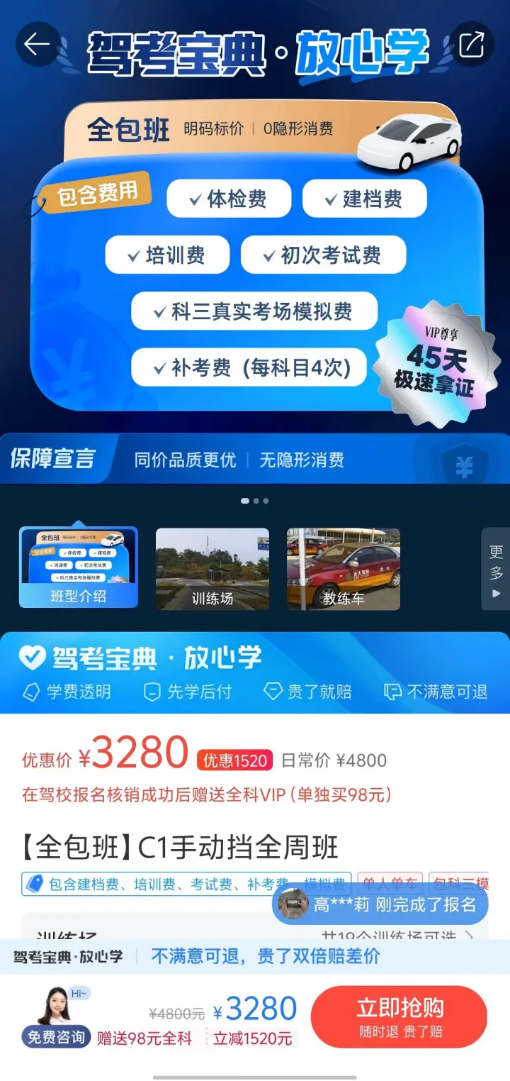 家人们谁懂啊!学车真的太容易踩坑了!我当初在家附近随便报了个驾校,现在想起来都气到捶腿😩 一开始听驾校说 “一次收费,后续啥钱都不用交”,我还觉得捡到宝了,结果练科二的时候直接傻眼 —— 车少人多到离谱,我每天早上挤 1 小时公交过去,跟十几个人抢 1 辆车,一天下来能上车练的时间都超不过半小时!教练更别提了,要么在旁边低头玩手机,要么说两句就不耐烦,问他操作细节还嫌我 “笨”💢 后来好不容易约上科二考试,结果因为练得太少没考过… 更气的是,驾校这时候突然说 “补考要交补考费”,我跟他们掰头当初的承诺,人家直接翻脸不认账!为了要回学费,我跟驾校吵了快一个月,最后只拿回一半,真的差点就不想学车了💔 就在我愁得不行的时候,刷到了驾考宝典的放心学推荐,看他们说 “一次交费全透明,学员考完全过驾校才拿钱”,我还半信半疑,结果试了之后才发现是真的香! 首先收费真的没套路,报名时清清楚楚列了所有费用,没有任何隐藏支出,不用像之前那样提心吊胆怕被坑;然后驾校环境特别好,车多不说,每辆车都干干净净的,不用跟别人抢着等;最关键是教练!真的太负责了!我练科二的时候,教练会站在旁边盯着每个细节,比如打方向的时机、看点的位置,哪怕我同一个错误犯好几次,他也不会不耐烦,还会换着方式教我,直到我学会为止,完全没有之前那种 “摆烂” 的样子👍 我科二就踏踏实实地练了一周,每天能保证 2 小时以上的练车时间,考试的时候一点都不慌,直接一次过!现在练科三也特别顺利,教练会带着跑真实路线,教我怎么跟车、怎么观察路况,连灯光操作这种容易忘的细节都反复帮我记,明天就要考科三了,我现在一点都不紧张~ 而且最让我安心的是,驾考宝典还承诺 “不想学了随时退钱”,不用像之前那样担心交了钱退不回来,这种踏实感真的太重要了! 明天科三考试,希望顺顺利利一把过!真心想给还没报驾校、或者被坑过的姐妹避坑!选驾校真的别瞎选,像驾考宝典这种 “学员过了才拿钱” 的模式,才是真的为我们学员考虑,好的驾校真的能少走超多弯路! ✨"