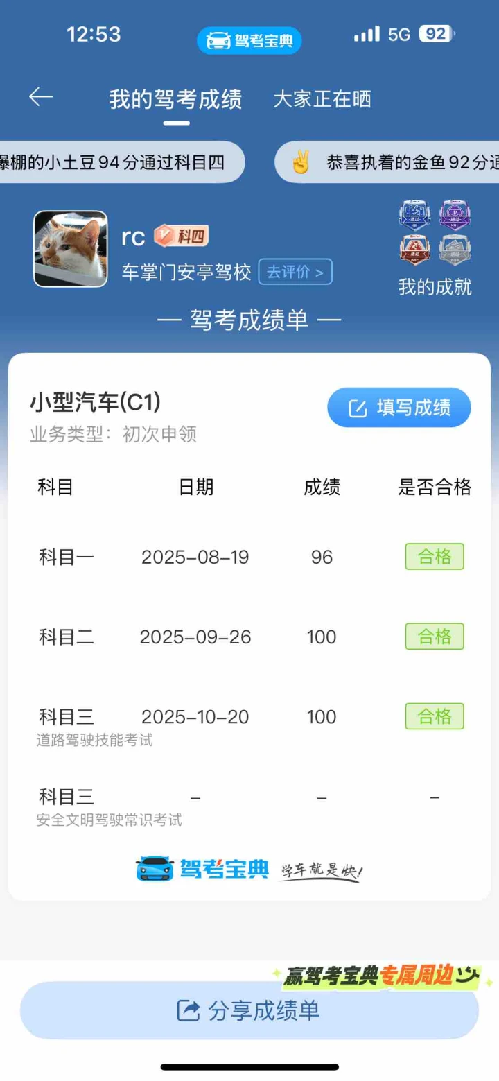 之前考c1科三连挂五次,这次考c2科二科三都一把过。自我总结了一下,首先是不要慌别紧张!再者是集中精神在接下来一步该做什么,永远在脑海里做好预先准备。最后就是这把考不过没关系,下次我还有机会!要做好挂了以后的心理调整。