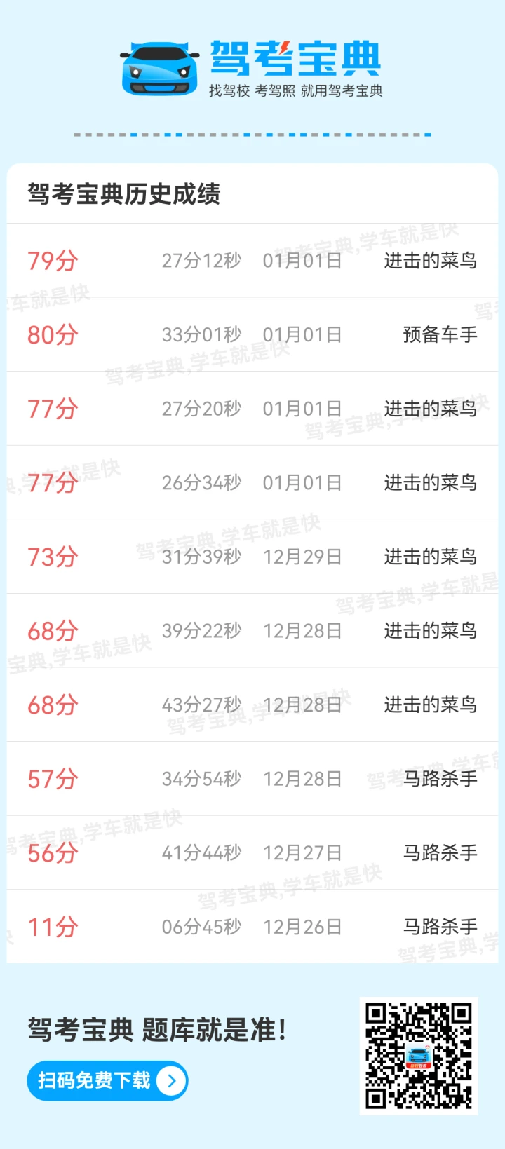 我也是马路杀手,但比你分高点,前面答对了,下次刷到又答错了,我都没信心了😄