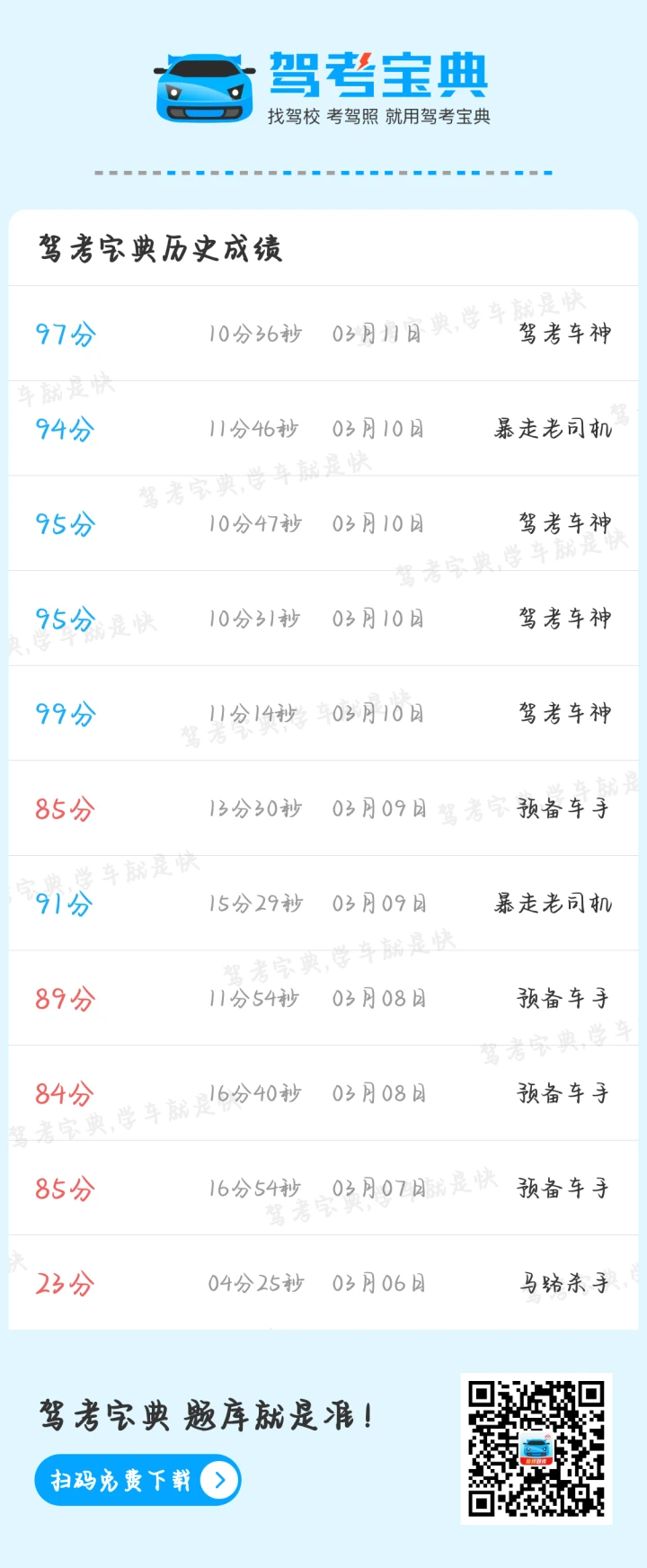 这个分数你就敢去预约考试啦?我也是两三天都是 80几分了我都还不敢预约呢😂