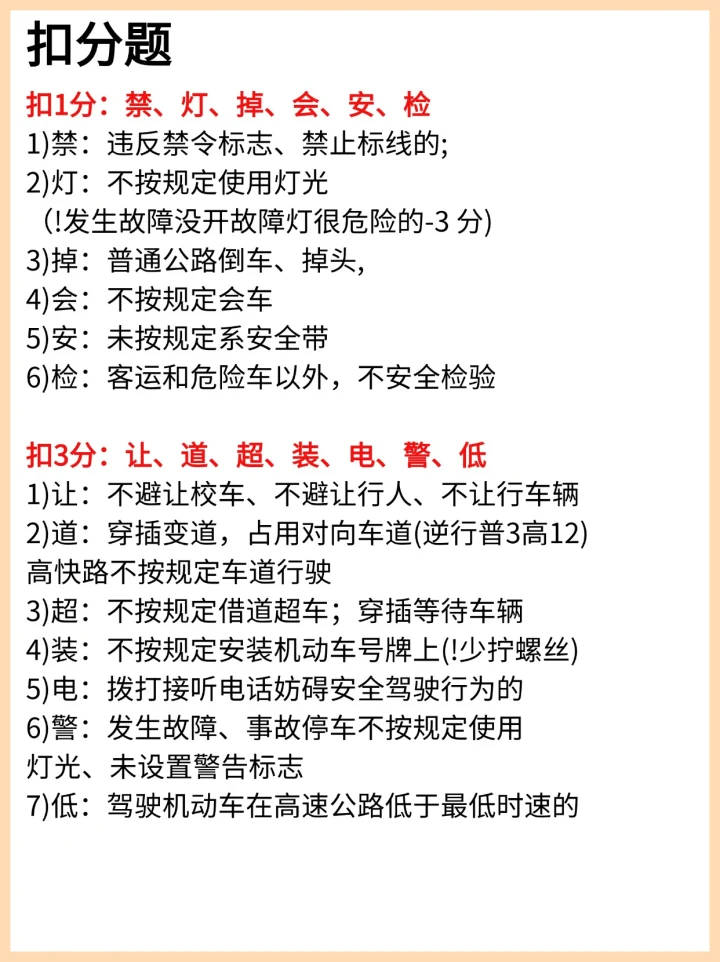 今天科目一顺利通过,真是运气和努力都在线~考试的题目比我预想的简单,基本都是这几天刷题时见过的。 其实刚开始可头疼了。第一天用宝典刷题,我才考了50分,把我自己都气笑了😅 室友们都说科一简单,靠常识都能蒙个80多,可他们拿证都是两年前的事了,现在题目多了,难度也大了。 后来我就换了一种学习方法: 1️⃣ 咬咬牙先开了全科VIP,认真听完了肖肖老师的“科一3小时精华课”。老师讲得特别清楚,一边听一边就能把知识点理顺,再做题就轻松多了。 2️⃣ 每次刷题都把错题收藏起来,做完一套就回头重做错题。宝典有个很贴心的功能:错题可以设置“答对三次自动移除”,特别适合反复巩固。 3️⃣ 所有题目过一遍后,找到自己薄弱的模块,比如罚款题或标志题,就去专项练习里集中训练,结合课程里讲的方法记忆。 4️⃣ 考前不再拼命刷题,而是把错题集再过一遍,早点休息,吃好早饭,保持好状态进考场。 我也把听课时的重点笔记整理出来了,希望能帮到还在备考的你。科一真的不用死记硬背,找对方法,一次过关并不难