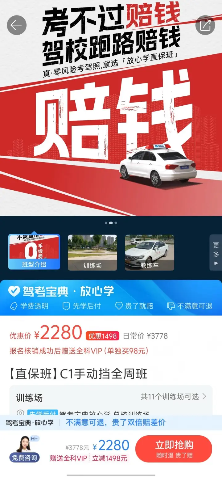 考试时遇到不少姐妹吐槽驾校收费杂乱,有人刚考完科二就已经花了五千多。所以建议一开始就找收费透明的驾校,最好是一口价全包。我是在驾考宝典“放心学”上报的,所有费用客服一开始就说清楚了,全部考完才两千出头,而且如果中途不想考了还能退费。一开始我也担心靠不靠谱,直到去实地看了驾校、和负责人聊过才放心。如果是还没确定报哪家的朋友,可以直接在“放心学”里选,省心不少。