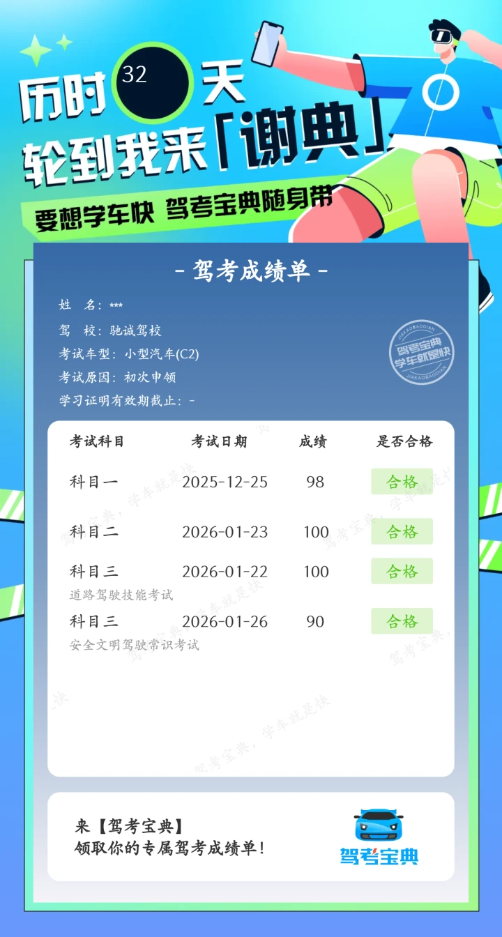 轻轻松松简简单单,感谢驾考宝典