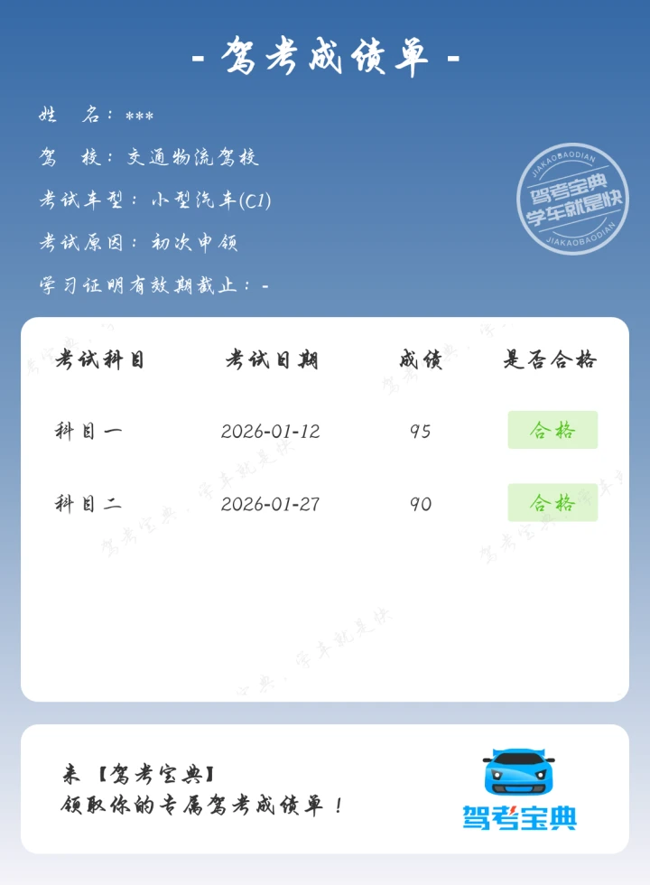 科二过考啦!始终要相信自己~学车就像修炼一样,一天比一天奈斯!