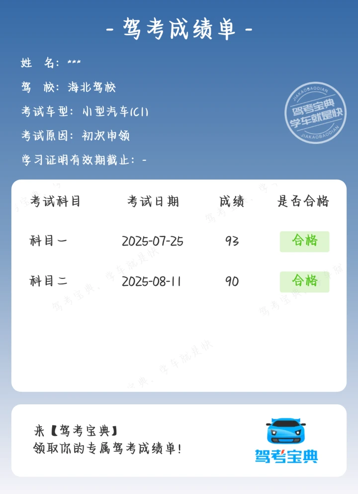 科二过考啦!始终要相信自己~学车就像修炼一样,一天比一天奈斯!