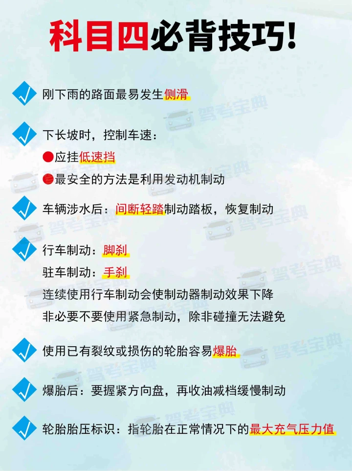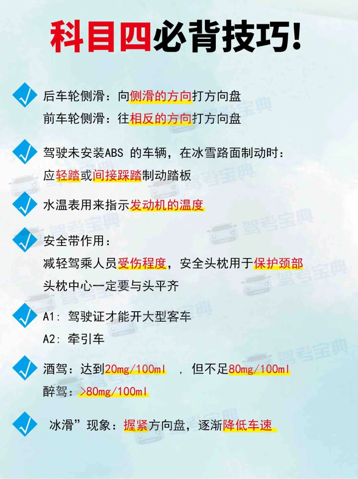 📝我还会在网上看一下知识点,随时拿出来看一看。🧐比如说交通法规、安全文明驾驶常识等等。💡这些知识点在考试中经常会出现,一定要牢记。💯