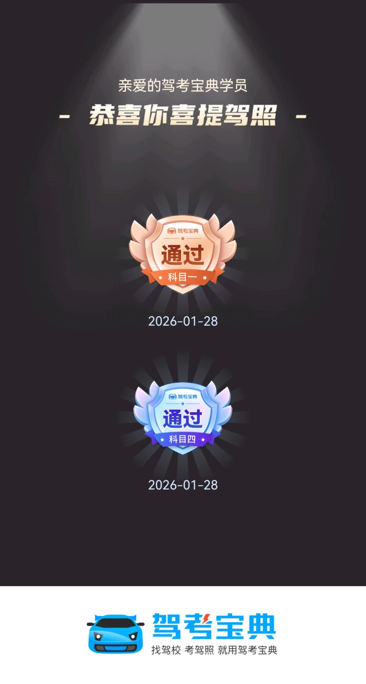 浅浅记录一下驾考成绩。科一到科四
