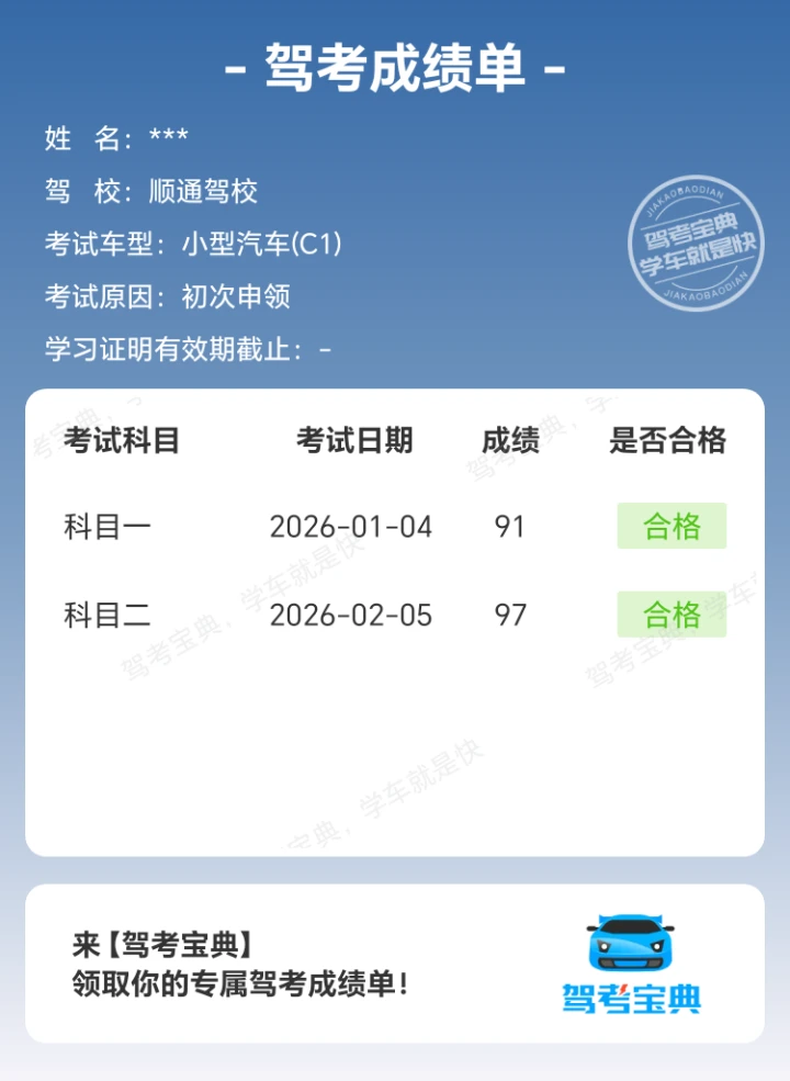 科二过考啦!始终要相信自己~学车就像修炼一样,一天比一天奈斯!