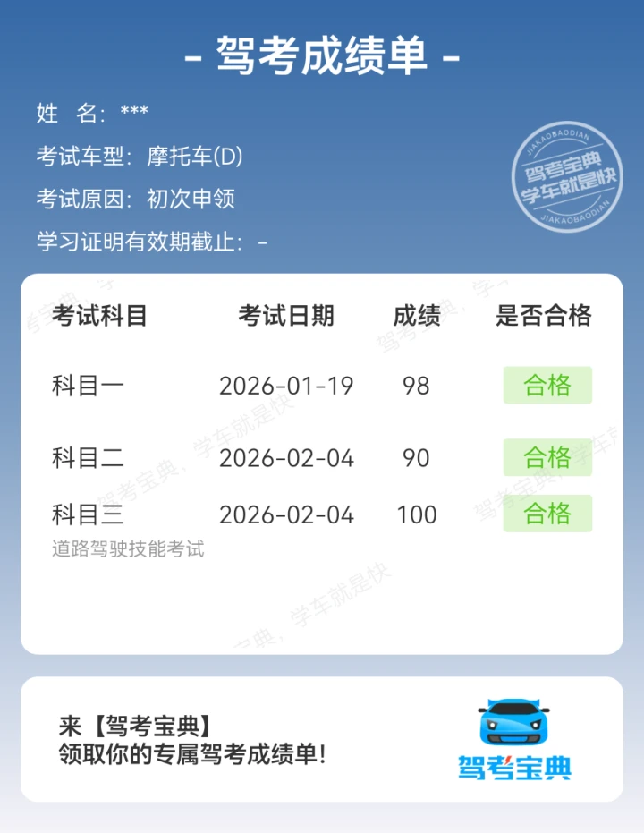 当前位置:首页>驾考圈>科三过考咯,好心态真的很重要!