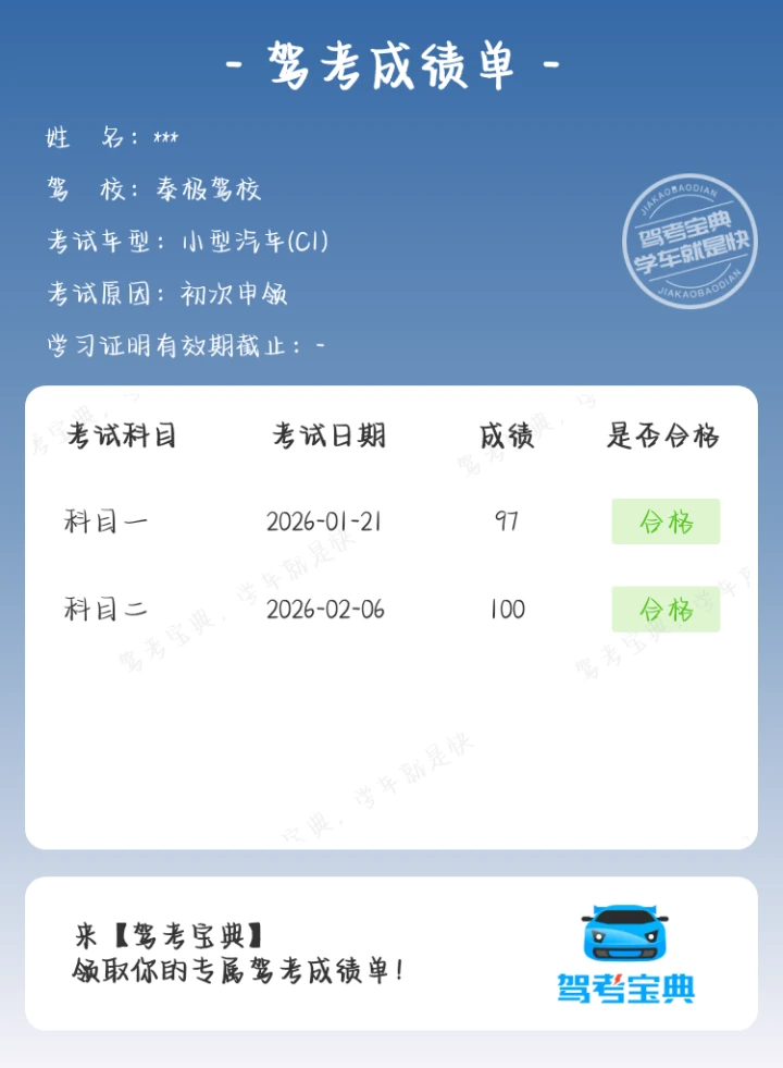 科二过考啦!始终要相信自己~学车就像修炼一样,一天比一天奈斯!