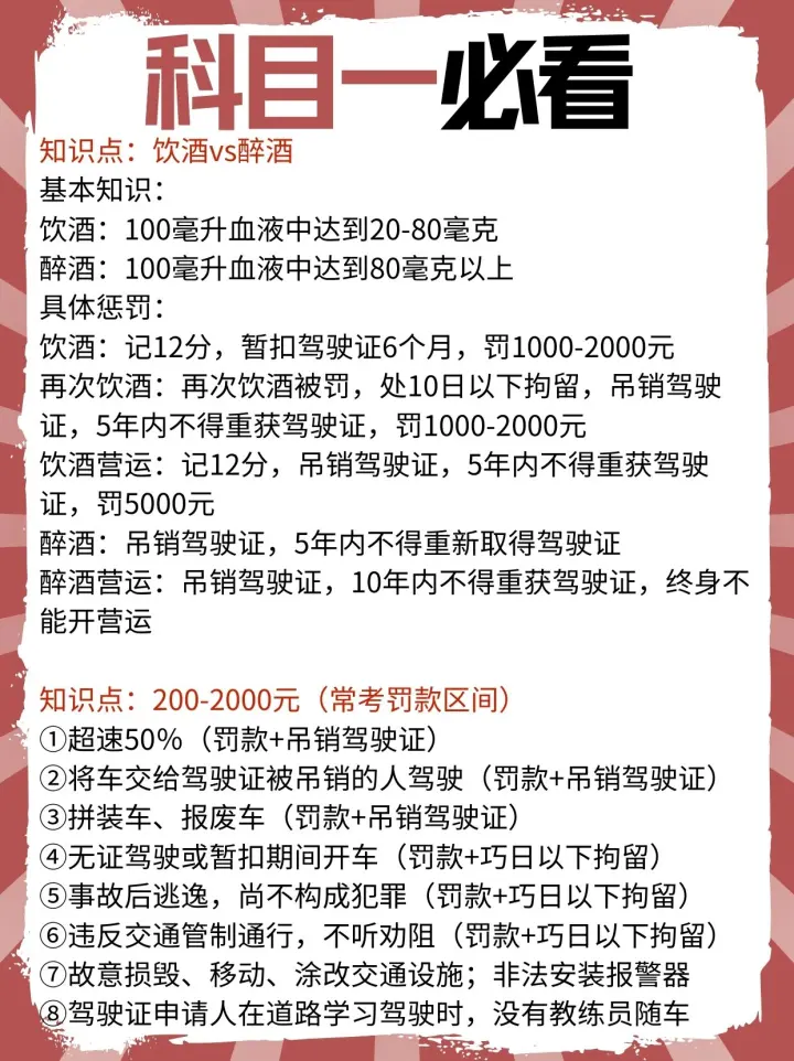 💰 最高5000元:酒后驾驶营运机动车(吊销驾照,5年内不得重考)