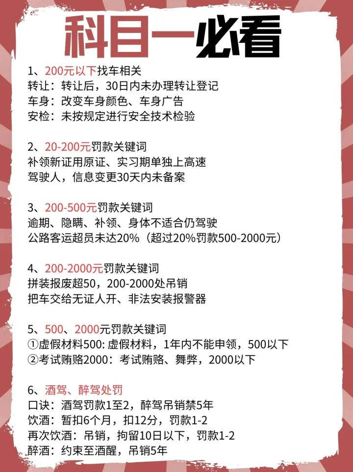 💰 20-200元:车辆转让未按时登记、车身改色/广告未备案、实习期独自上高速