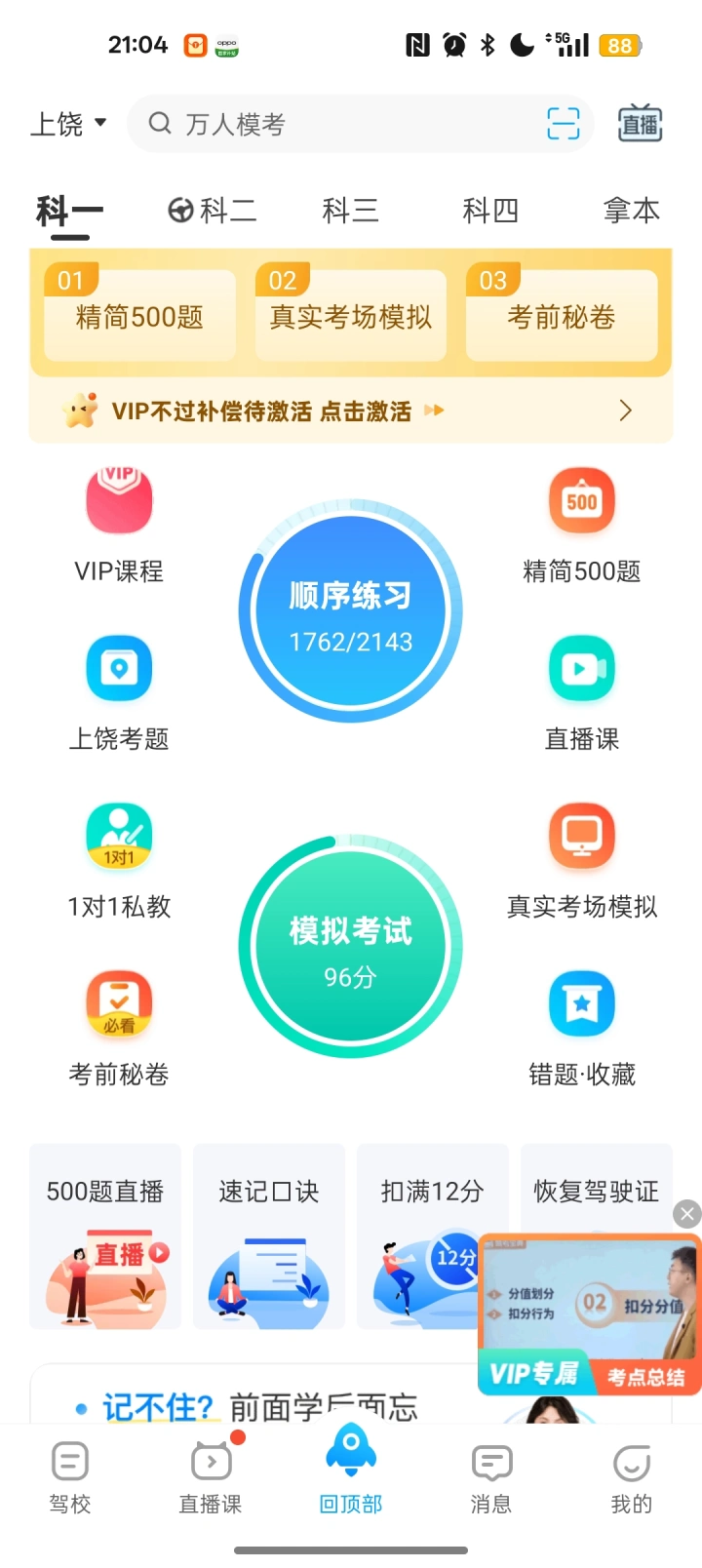 刚考过科一,97分!错的那题是手滑点错了,不过能过就行~之前刷题时差点被扣分罚款题难倒,各种1分、3分、6分、9分、12分看得眼花😵。后来发现了驾考宝典的科目一3小时精华课,真的是宝藏课程!虽然是自己花钱买的,但真心觉得值——老师把知识点和口诀都讲得很清楚,尤其是扣分罚款这种难点,直接帮你理出逻辑,背起来轻松多了。 扣分题核心口诀 ✅ 1分:会车、普通道路倒车/掉头、不按规定使用灯光、未年检、不系安全带、违反禁令标志标线 ✅ 3分:普通道路逆行、开车打手机、高速低于最低限速、排队时插队、高速不按规定车道行驶、不避让行人/校车 ✅ 6分:占用应急车道、闯红灯、驾照暂扣期间驾车、事故逃逸(轻微伤或财产损失) ✅ 9分:准驾车型不符、高速违法停车、无校车资格驾驶校车 ✅ 12分:酒驾、高速倒车/逆行、替人代扣分牟利、事故逃逸(致人轻伤或以上) 罚款题重点汇总 💰 20-200元:车辆转让未按时登记、车身改色/广告未备案、实习期独自上高速 💰 200-2000元:驾驶拼装/报废车、超速50%、把车交给无证人员、非法安装警报器 💰 500-2000元:公路客运超员20%以上 💰 2000-5000元:使用伪造/变造车牌或证件(可能并处拘留) 💰 最高5000元:酒后驾驶营运机动车(吊销驾照,5年内不得重考) 祝大家科一一次过,早日拿证开车去浪