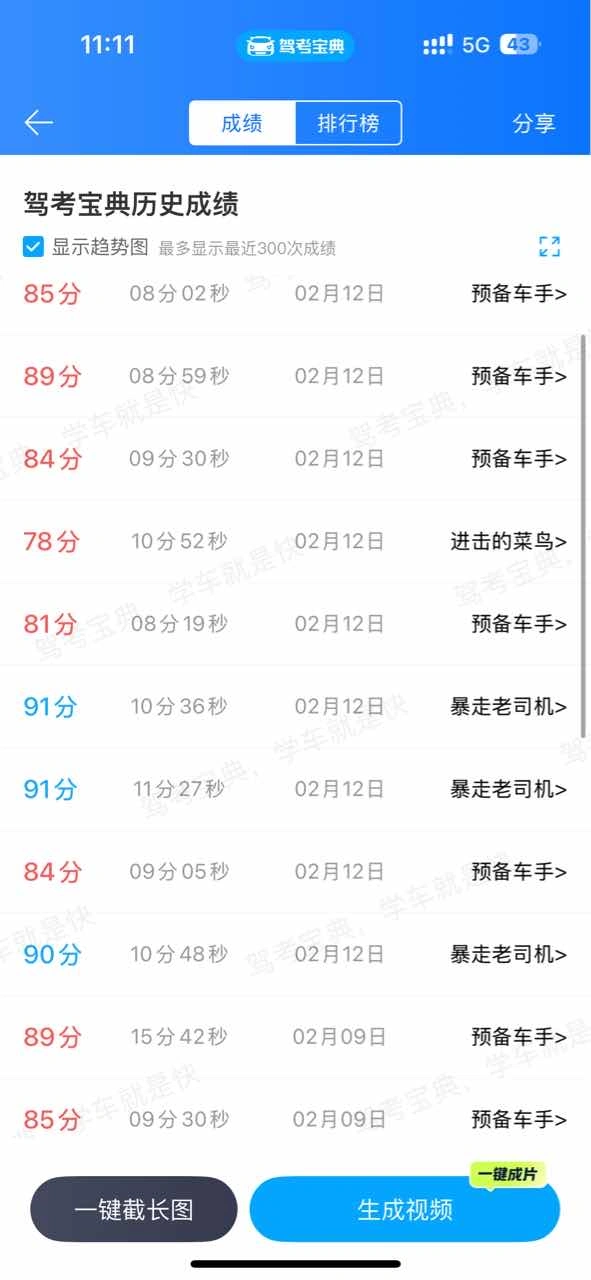 最好到90分以上回回,这样比较有把握~不然到时候一紧张可能失误!