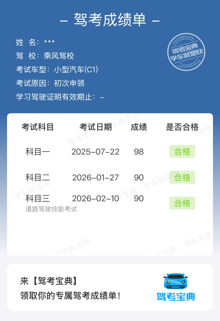 浅浅记录一下驾考成绩吧,科三通过~