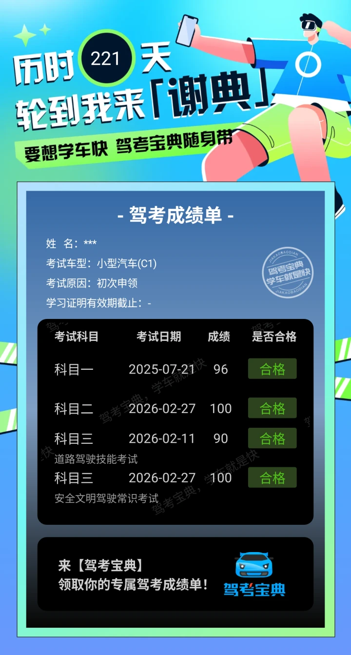 轻轻松松简简单单,感谢驾考宝典,今日前来谢宝典,祝愿大家考试都是一把过