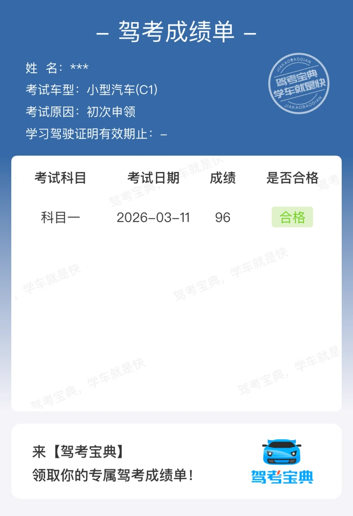 科一顺利通关,友友们收下这份驾