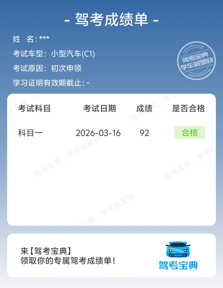 科一顺利通关,友友们收下这份驾考福气