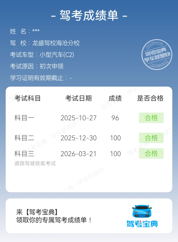 当前位置:首页>驾考圈>科目三>科三过考咯,好心态真的很重要!