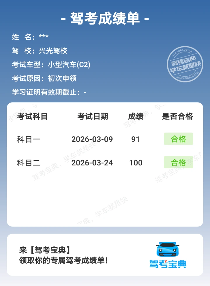 科二过考啦!始终要相信自己~学车就像修炼一样,一天比一天奈斯!