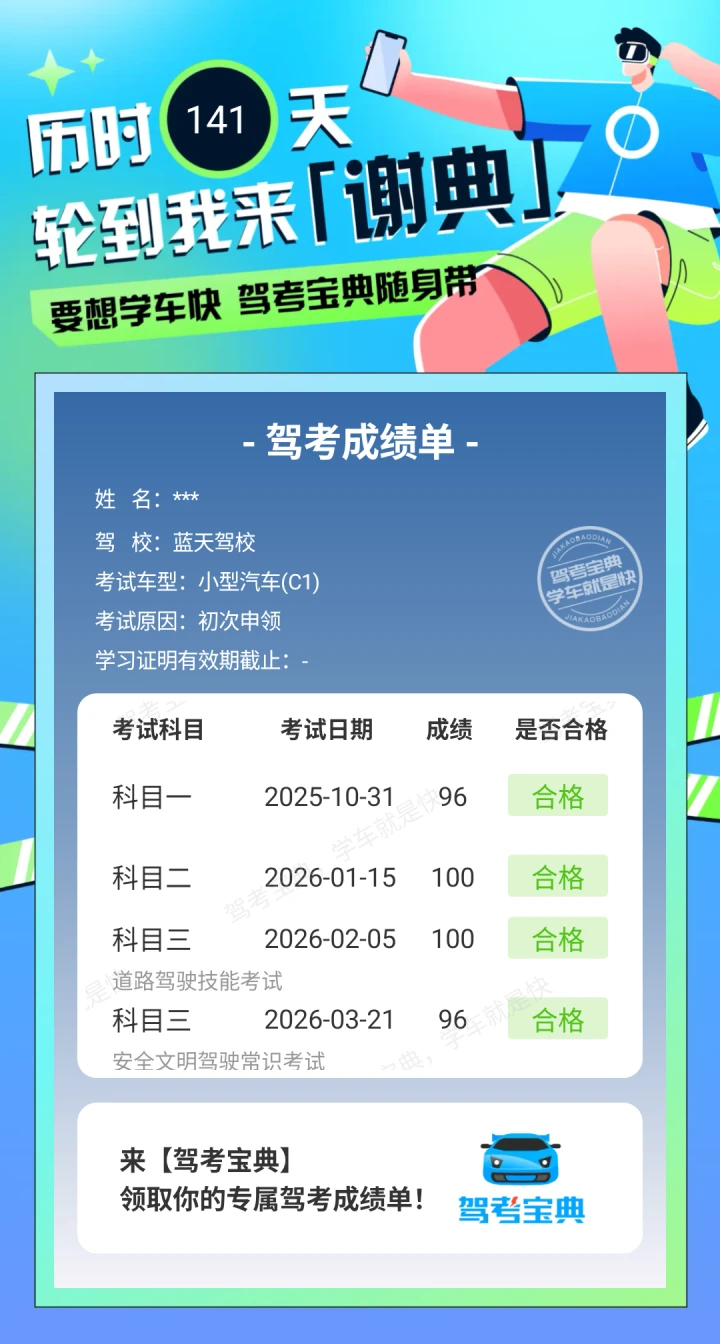 轻轻松松简简单单,感谢驾考宝典,今日前来谢宝典,祝愿大家考试都是一把过