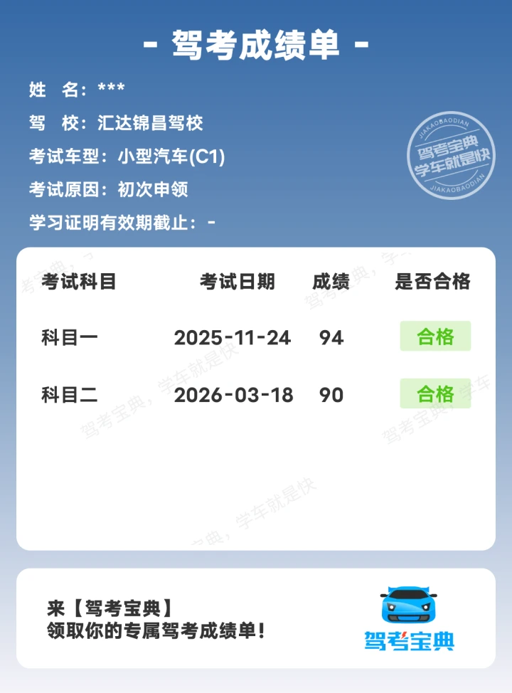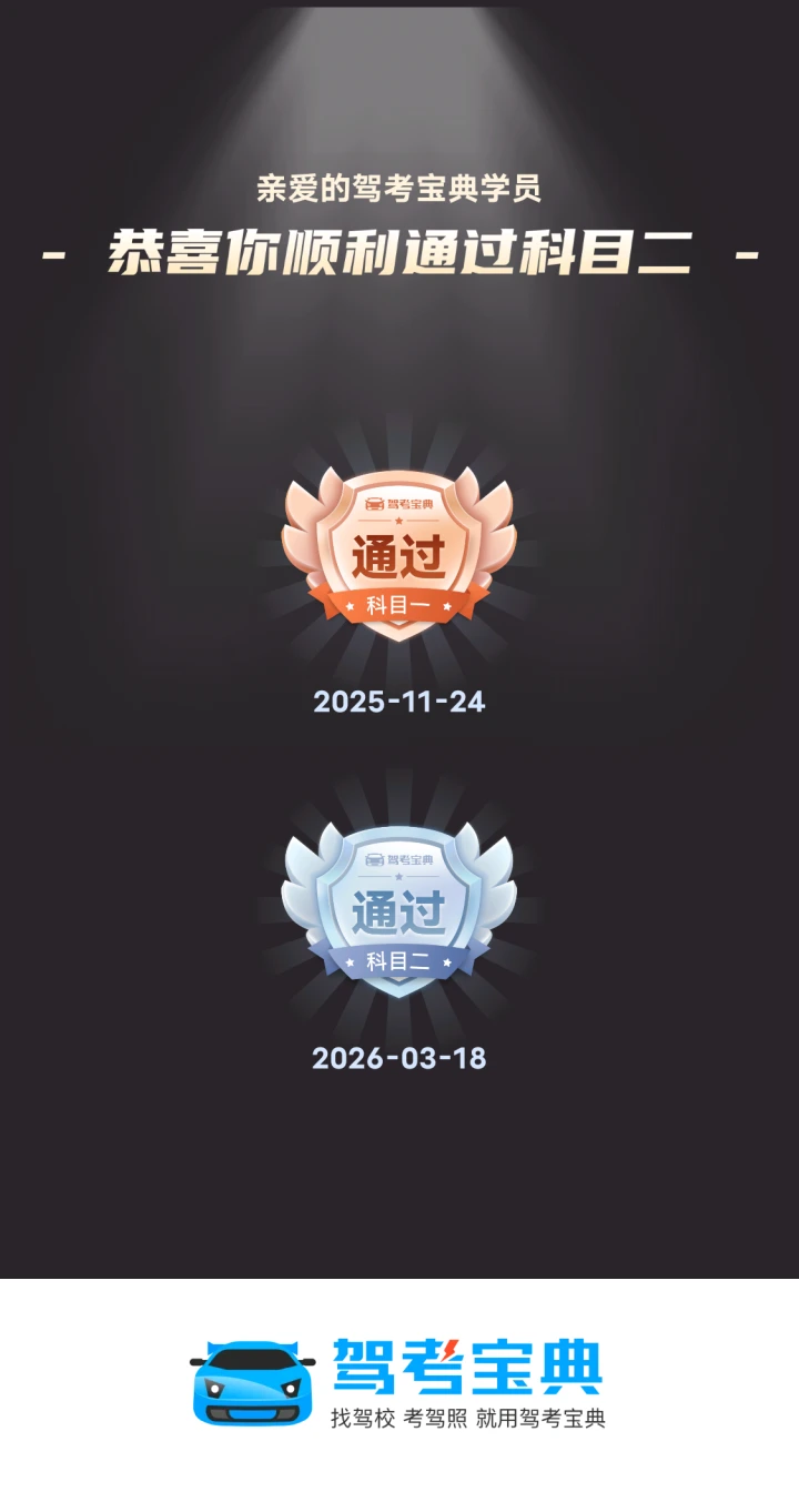 科二过考啦!始终要相信自己~学车就像修炼一样,一天比一天奈斯!