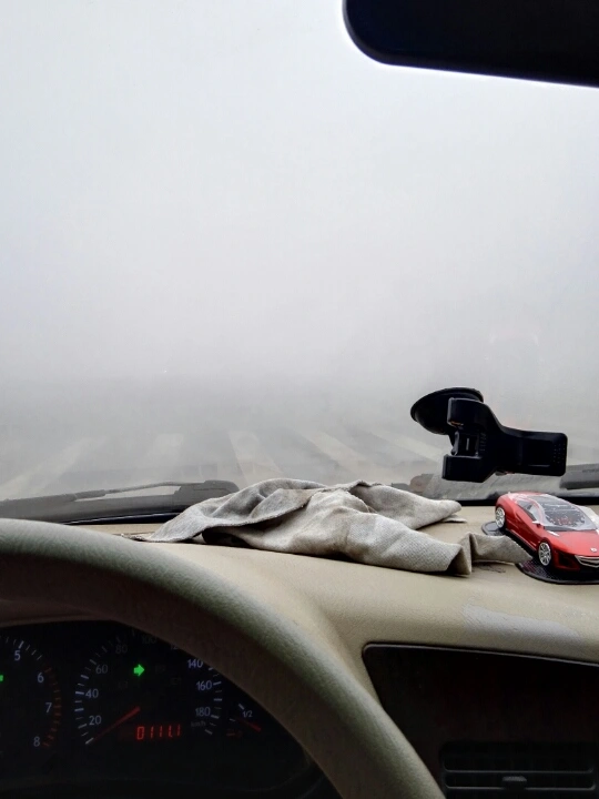 雾大看不清红灯还是绿灯,应该是红灯,车往前动了一点,前轮过停止线又停住了,抓拍监控闪了一下,会不会出事?雾这么大会被拍到车牌吗?