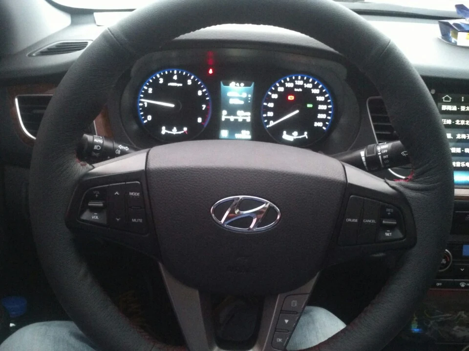 现代名图1.8自尊已提车半年了,跑了一万一千公里。说起对他的感觉属于一见钟情的那种感觉,我的同事有一辆名图,我坐过感觉很好,外观大气中级车,现在除了在家在上班剩余的时间都在车上了。我的喜怒哀乐他都知道,我特别喜欢他的大屏导航,一键启动,无钥匙进入,全景天窗,定速巡航,真皮座椅等等应有尽有,没后悔选我的图图。我媳妇亲手缝的真皮方向盘,加装的行车记录仪,很实用建议所有车友都应该加装一个行车记录仪。双区空调,想怎么调就怎么调,哈哈