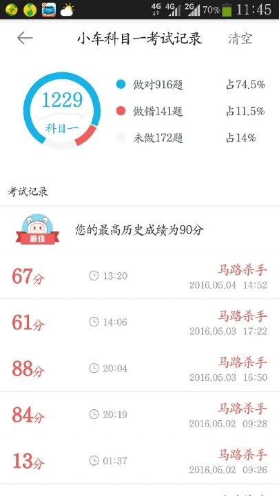 平时考的这种成绩,科目一照样过了,哈哈😄感谢宝典的给力辅导。考友们,建议你们考试的时候咬文嚼字,放平心态,这样大部分都可以过的,千万别紧张喔~祝友友们也可以顺利过关~我先嘚瑟会~😄