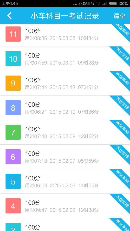 学校叫我一点钟到学校,十二点半就到了,一直等等到一点人越来越多,一问今天一百四十多号人考试,我总校报名的,还排到后面,只等到三点半左右才去考场,腿都站软了,三点五十终于到我了,十二分钟全部做完了,等到十五分钟才可以交卷哦,考了98分。做题太急了看错两道题。不是应该一百分吗? 大家科目一有什么不懂的可以问我!