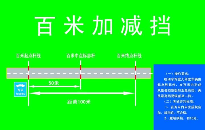 一、操作方法 1、车辆在起始线停稳,用一档起步后迅速提速,待车速达到高一级挡位的速度后立即加挡。 2、挂入高一级挡位后,再迅速提速和加挡,就这样逐级加到最高档位,而且车速应达到每小时25公里以上。 3、完成加挡操作后,迅速抬起加速踏板减速,待车速降到低一级挡位的速度后立即挂入低一级的挡。 4、挂入低一级挡位后,再继续减速和减挡,直至前保险杠到达终点线时,减至二档,停车。 二、考试攻略 1、主要考察油离配合。 2、左脚不离开离合,右手不离开档把,起步后就加油加档。 3、换档油离不分先后顺序,抬油门和踩离合要同时进行。 4、操作中应做到准确迅速不"拖档"。