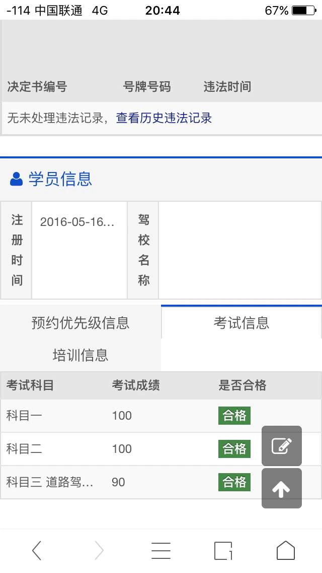 科目一和科目二都100过,科目三速度与档位不匹配扣10分。我运气还蛮好的,没有补考过