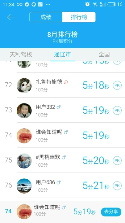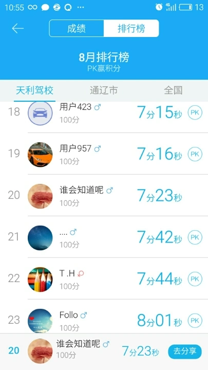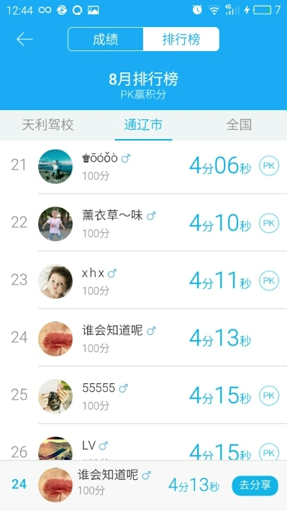 你要知道科目4考什么,就考模拟上的题。。。而且相对非常简单,我开始做10道错3.4道,一直做一直做一直做,根本不用用心背,同一道题你在做错的可能其实很小,就这样,就这样,就这样,做20次模拟,基本90分,做30遍95分,40遍97-100分,最后就去可以pk,玩排行榜啦~,谁玩谁知道,你要能玩排行了,考试。。用脚你都能过,还得是第一个过。时候今天科目4答了100分,考官以为我没过,最后顿时他呆了。哎。为了谨慎得100今天足足用了5分钟。5分钟。5分钟。。