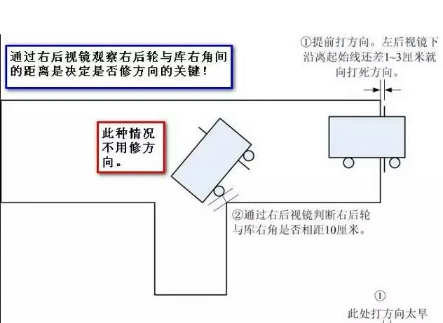 科目二倒车入库是场地5项考试中最难的一项,花的时间自然比别的项目要多。倒车入库分4步,分别是右入、左出、左入和右出,其中右倒车入库最难。 教练的方法是:当车后退过程中,左后视镜压住地上的起始线时立刻将方向盘向右打死,然后看右后视镜,当库角出现在镜子中央时向左回半圈方向,等待车入库并与库的两边线平行时迅速回正方向。我们几位都试了几把,成功率50%左右。 于是,我开始怀疑方法有漏动。因为,每个人倒车时的速度不样,甚至同一个人第一次与第二次的速度也会有偏差,通过起始线把方向盘向右打死的时机也不相同,如果机械地套用“当库角出现在镜子中央时向左回半圈方向”这句话肯定会出问题。 在这里教大家倒车入库一定要通过后视镜观察库角与后轮间的距离,提前判断后轮是否会压线,如果判断不压线就不要动方向盘,否则,就要回方向,回多少也要根据库角与后轮间的距离而定,最好让后轮与库角之间保持约10厘米。只要把这两者间的距离看准了,就一定会成功入库! 当你通过右后视镜看到两者间的距离很近时,这表明如果不改变后退的方向,右后轮就会压过库角!因此,遇到这种情况时,就应向左回方向盘,回到右后轮距离库角约10厘米开始入库时,立刻将方向盘向右打死,等车身与库两边线平行时回正方向。这样,右入库完成。同样,左入库时则通过左后视镜判断左后轮与左侧库角之间的相对距离来修方向,一样会100%成功。