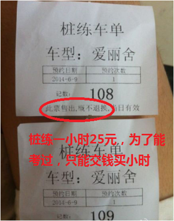 不要以为你交了报名费就算完事了,这只是你练车费用的一部分。科二的时候练车每次都是十几个人等一辆车,一天的时间都摸车不到几分钟!可耻的是考前训练竟要花钱买小时练车,跑一圈一个小时120元,练倒库每次25元,买了还不能退的!真的挺气愤的,整个算下来,学个车都要将近小一万了!